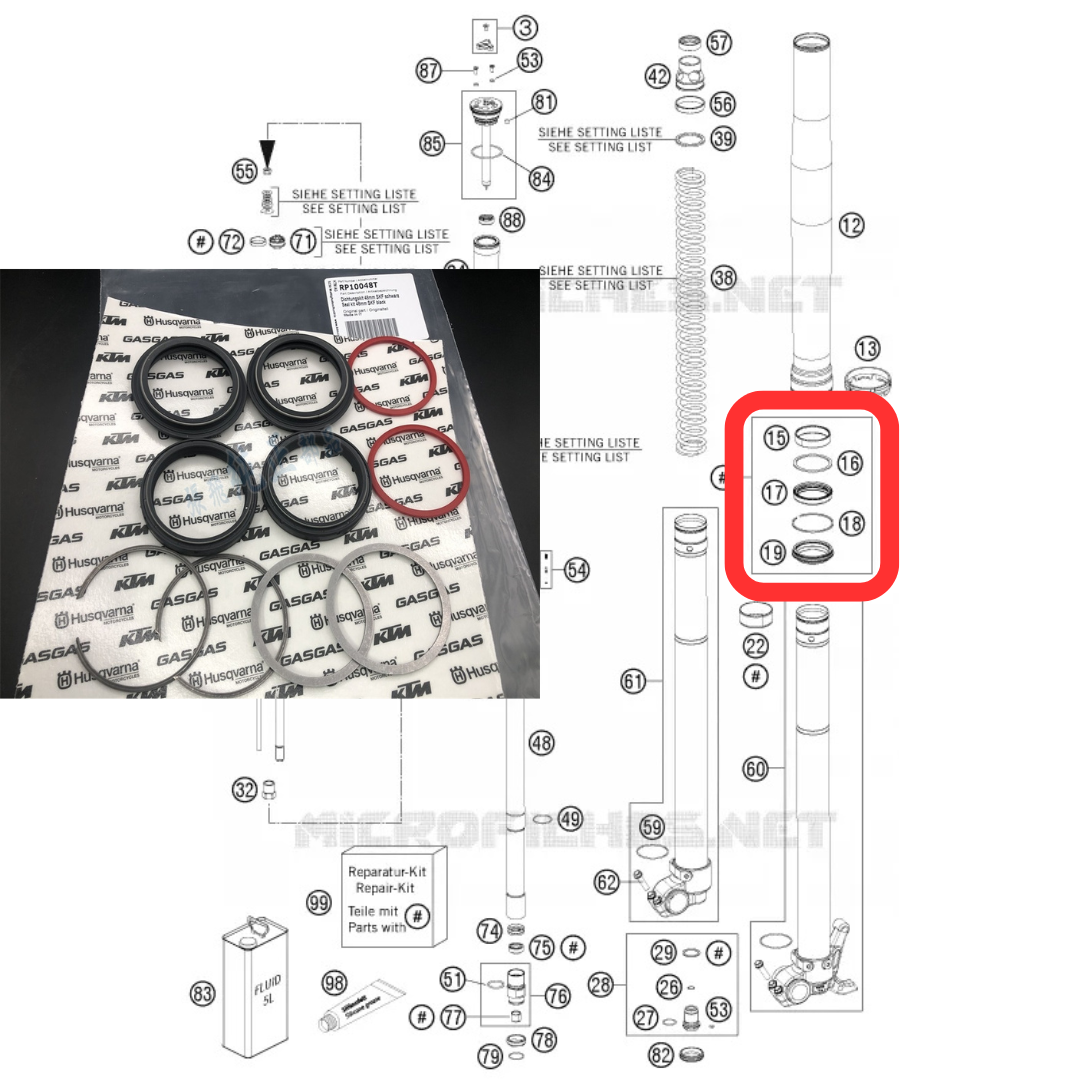 Bộ phớt phuộc chính hãng OEM do SKF sản xuất cho KTM · Husqvarna · GasGas. Được KTM sử dụng làm phụ tùng nguyên bản, đảm bảo chuẩn kích thước và độ bền cao nhất cho phuộc USD WP 48 mm.